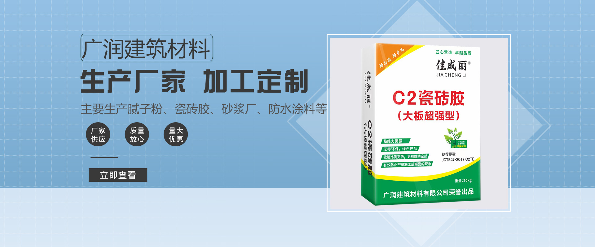 廣西廣潤建筑材料有限公司一直致力于高品質(zhì)的新型膩?zhàn)拥难兄疲讶〉昧硕囗?xiàng)科研成果。開發(fā)出一系列廣受市場歡迎的涂料產(chǎn)品,集研發(fā)、生產(chǎn)、銷售于一體的建筑材料制造企業(yè)。廣西廣潤建筑材料有限公司會聚了具豐富經(jīng)驗(yàn)的專業(yè)技術(shù)人才及高素質(zhì)的管理隊(duì)伍。主要從事生產(chǎn),水性環(huán)保鋼化膩?zhàn)臃郏鈮椥?、柔性、抗裂型膩?zhàn)臃?、?nèi)墻防水膩?zhàn)臃鄣戎懈邫n建材產(chǎn)品。廣西廣潤建筑材料有限公司開業(yè)至今,本著“求實(shí)、進(jìn)取、信譽(yù)為本、客戶至上”的宗旨,積極開拓業(yè)務(wù),取得了優(yōu)異成績,……